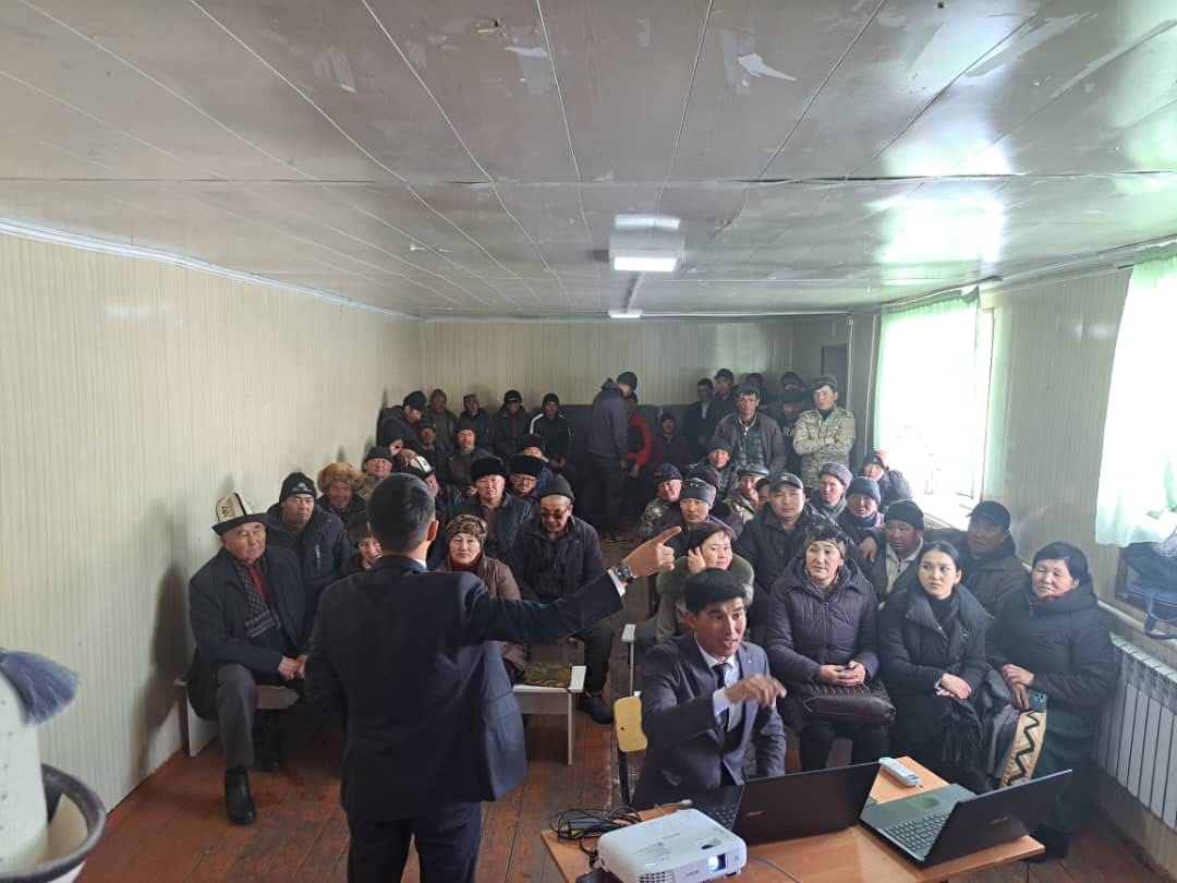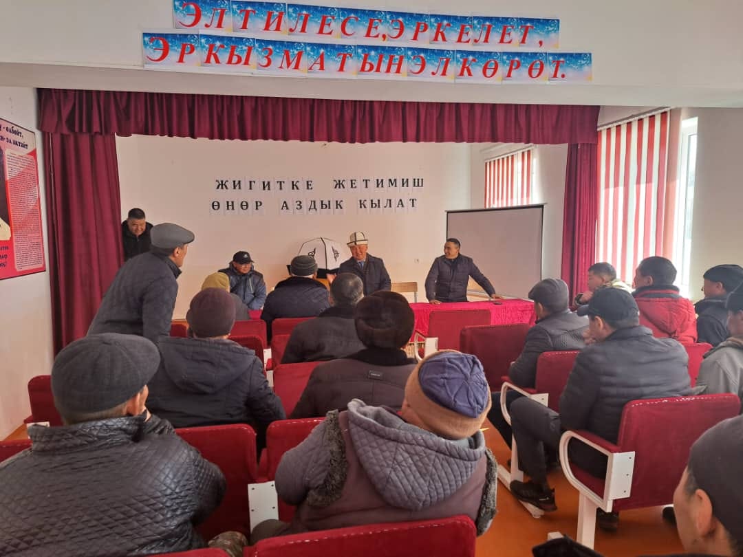 Дөбөлү айыл аймагынын айыл өкмөтүнүн башчысы Кудайбергенов Камчыбек Кадыркулович эл менен жолугуп жыйын өткөрдү.